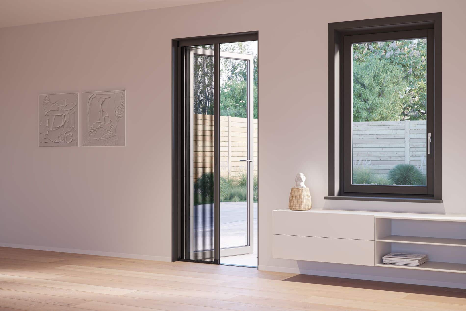 Dobbel rulledør med myggnetting – Antrasittgrå (RAL7016)